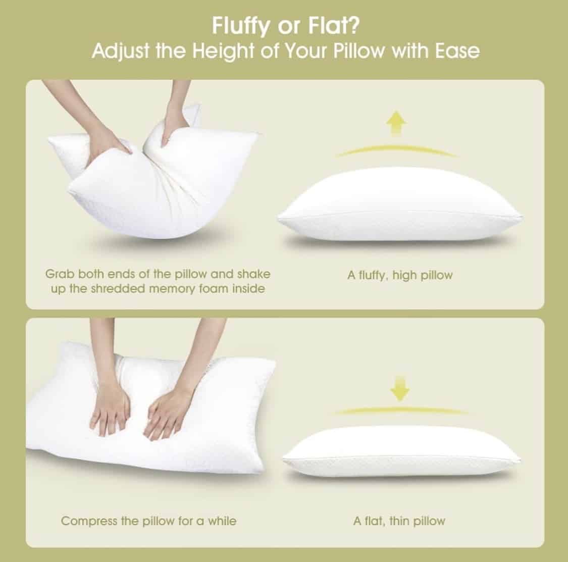 - Medium-firm adjustable fill (80% shredded memory foam, 20% polyester fiber)